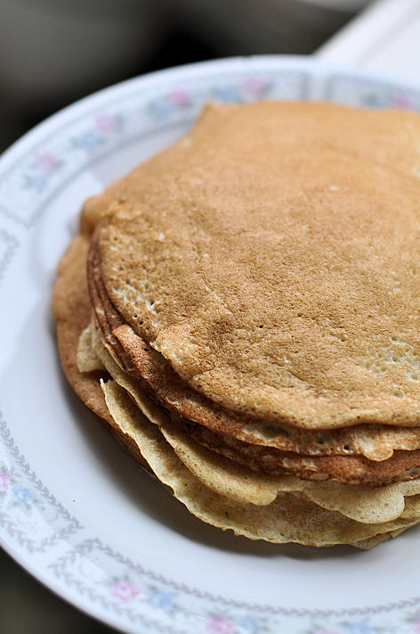 Transfer to a plate. Cover to keep warm. Repeat with remaining batter.