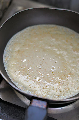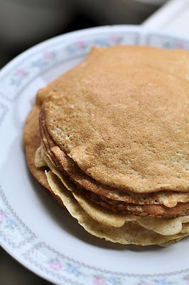 Pour 2 1/2 tablespoons batter into pan. Swirl to cover base. Cook for 2 to 3 minutes or until light golden. Turn over and cook for 1 minute.